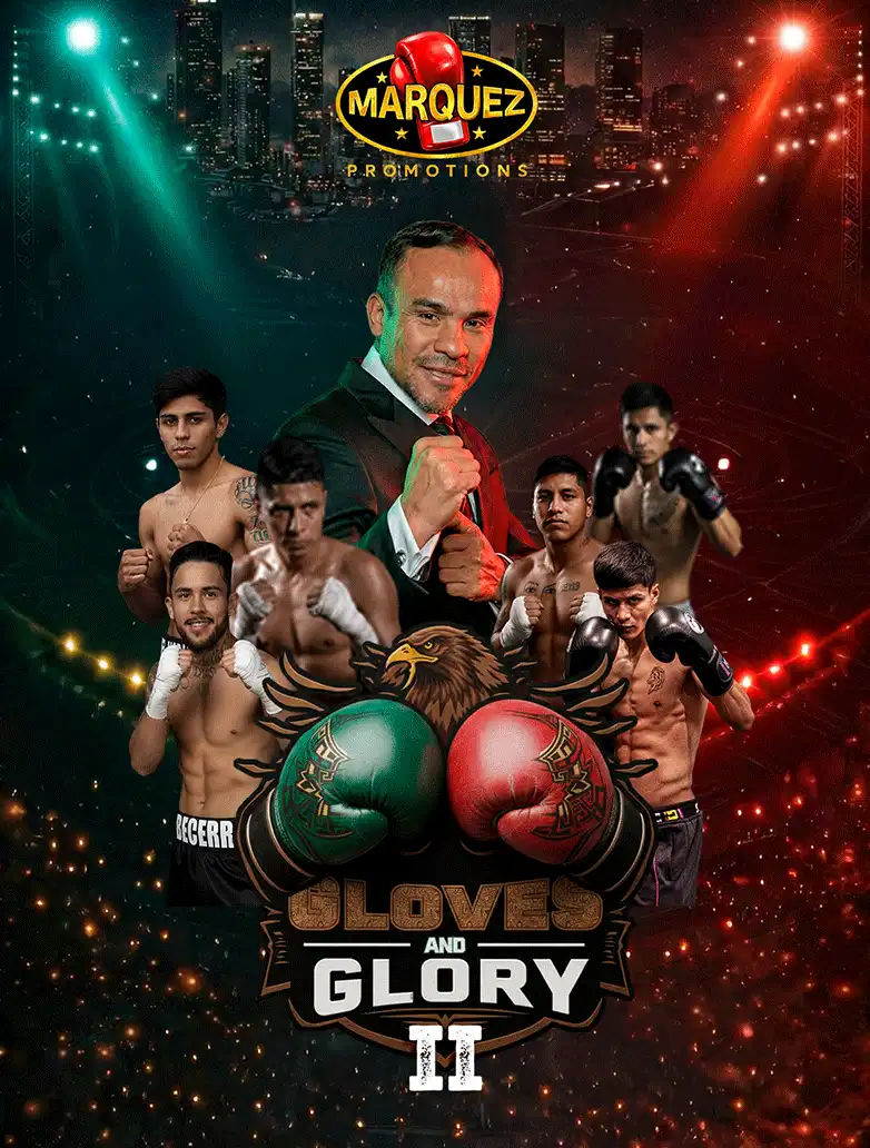 <strong>Gloves and Glory II:</strong><br> El Surgimiento de la Nueva Era <br><br> Presentado por<br> <strong>Márquez Promotions</strong><br><br> La ciudad de Monterrey se viste de gala para recibir la segunda edición de<strong> Gloves and Glory</strong>, la serie de eventos que está redefiniendo el boxeo en México. Bajo el sello de Márquez Promotions, liderada por la leyenda y multicampeón mundial <strong>Juan Manuel "Dinamita" Márquez</strong>, San Pedro Garza García se convierte en el epicentro de la pasión y el coraje. <br><br> <strong>La Misión:</strong><br> Forjar Campeones<br> Fiel a la filosofía que llevó a Juan Manuel Márquez a la cima del boxeo mundial, técnica depurada, disciplina inquebrantable y un corazón indomable, esta función ha sido diseñada con un solo objetivo: encontrar y proyectar a la nueva generación de campeones mundiales.<br> Aquí no hay peleas de trámite. Cada uno de los 10 combates ha sido cuidadosamente emparejado para garantizar paridad y competitividad máxima, obligando a cada púgil a entregar su mejor versión para alcanzar la gloria.<br><br> <strong>Lo que te espera:</strong><br> 10 Guerras Estratégicas: Una cartelera compuesta por prospectos guerreros probados que buscan el siguiente peldaño hacia un título mundial. <br><br> "El boxeo no es solo golpear, es pensar, es resistir y, sobre todo, es tener el de ser el mejor. En Márquez Promotions, no buscamos peleadores, buscamos leyendas." - <strong>Juan Manuel Márquez</strong>.